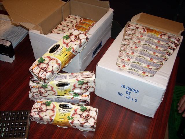 Ad insospettire i militari sulla probabile frode, però, una scritta sull’involucro in caratteri molto ridotti ed in lingua straniera che, tradotta, indicava il nome di tutt’altra specie di mollusco (totano gigante del pacifico), di qualità di molto inferiore. Le prime analisi visive, da parte di esperti scientifici dell’ARPAT di Livorno confermavano l’evidenza che all’interno delle lattine non vi fosse il polpo.