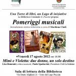 VIAREGGIO. Venerdì 17 agosto “Mimì e Violetta: due donne, un unico destino”: terzo ed ultimo incontro del ciclo I POMERIGGI MUSICALI della Biblioteca Comunale “G. Puccini”, organizzati in collaborazione con il Club “La Bohème”.