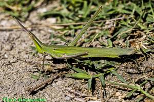 Un insetto ortottero, l’Acrida Ungarica, sul ciglio di un fosso a Bozzano, Massarosa.
