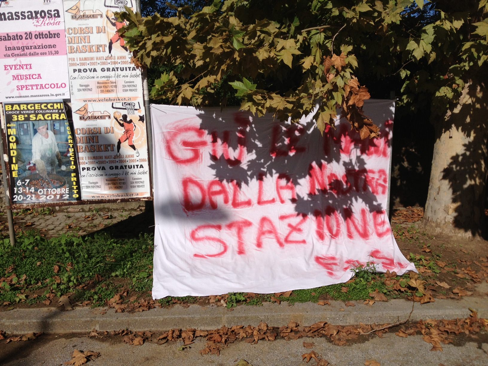 MASSAROSA. Giù le mani dalla nostra stazione. Questo si legge su uno striscione che alcuni cittadini hanno attaccato davanti la stazione ferroviaria di Bozzano, lungo la via Sarzanese.