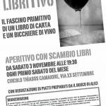 CAMAIORE. Da sabato 3 Novembre alle 19.30, per ogni sabato del mese al Circolo Thiasos in via XX Settembre appuntamento con il “Libritivo”, aperitivo con scambio di libri: il fascino primitivo di un libro di carta e di un bicchiere di vino.