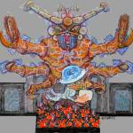 Al centro del carro, infatti, Galli ha collocato un inquietante ragno dai colori accesi: è lui il simbolo di una Rete sì virtuale, ma capace di prendere possesso della nostra mente, di svuotarci della capacità critica e di renderci facilmente manipolabili.