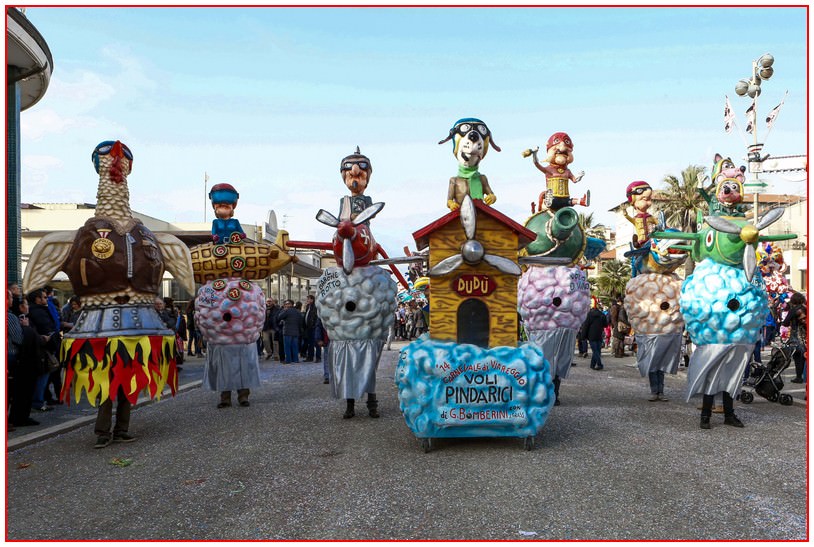 Satira azzeccata da Marzia Etna, in crescita nelle recenti edizioni: i suoi politici rappresentati come mongolfiere, o meglio, “Palloni gonfiati” piacciono per la somiglianza e per l’immediatezza del messaggio, che poi è quello che nel Carnevale fa la differenza. Molto esplicativo in tal senso, oltre che buono per il risultato finale, anche “L’Italia a rotoli” di Enrico Vannucci.