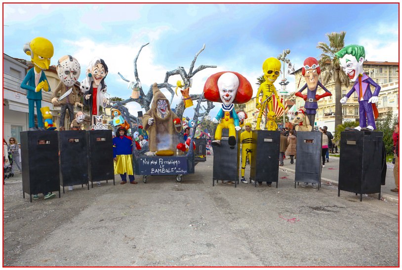 In rampa di lancio anche i cattivi di “Noi non pettiniamo le bambole” di Libero Maggini: dal Pennywise di “It” a Montgomery Burns de “I Simpson”, da Crudelia Demon alla strega di “Biancaneve” si può apprezzare un ottimo lavoro. Fuori dai soliti canoni della mascherata di gruppo l’ “Omaggio al Signor G” di Roberto De Leo: i tratti somatici di Gaber si prestavano a essere caricaturizzati, la colonna sonora con i suoi brani più belli rende il quadro ancor più piacevole.