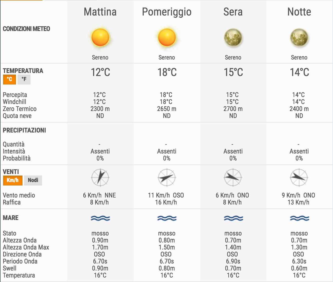 Per Lunedì 17, il giorno di Pasquetta 3b meteo prevede giornata di sole con temperature massime superiori ai 19 gradi centigradi; tempo sereno con assenza di nubi