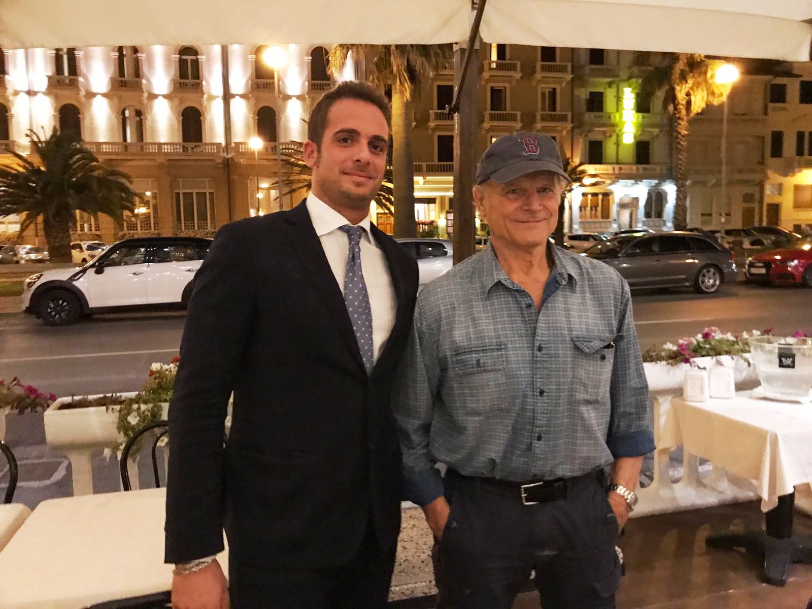 Ieri sera ha cenato al ristorante Ciccarelli, accolto da Renato e Simone Castioni e dal direttore di sala Giuseppe Patruno (con lui nella foto). Terence Hill (vero nome Mario Girotti) si mantiene in perfetta forma. Ha chiesto un menù vegetariano con pasta fatta in casa, risotto al rosmarino, hamburger vegetariani e insalata. La famiglia Hill ha poi apprezzato i gustosi dessert del ristorante Ciccarelli.