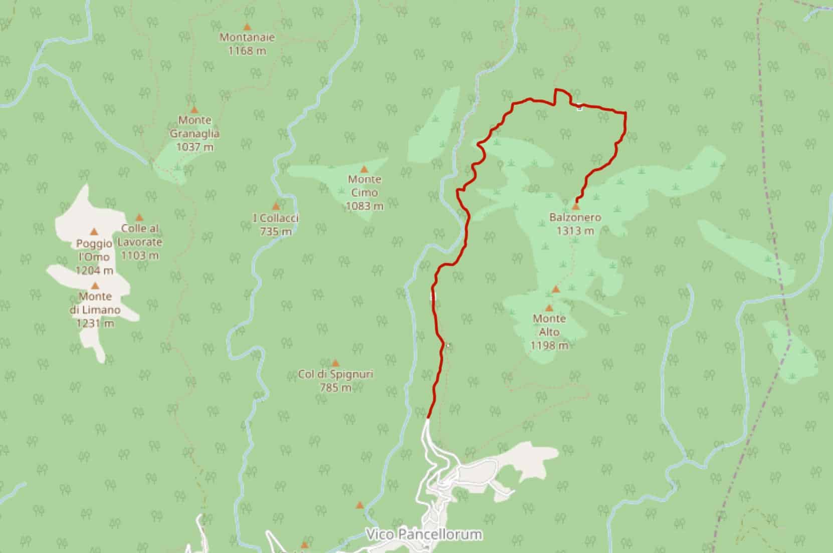 L’itinerario che proponiamo oggi, ottimo per la mezza stagione poiché raggiunge quote non molto elevate (seppur in ambiente di notevole interesse floro-faunistico), parte da Vico Pancellorum (piccolo borgo poco oltre Bagni di Lucca, procedendo verso Abetone) per arrivare in vetta al monte Balzo Nero (1315 mt).