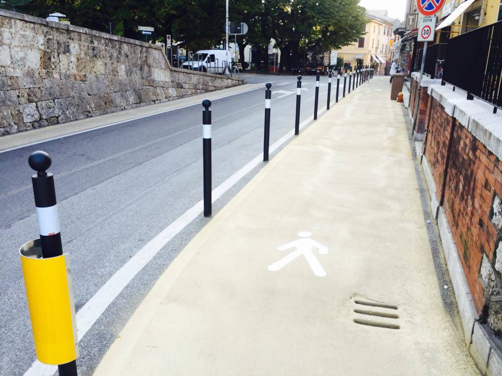 Varchi pedonali di accesso al centro storico di Pietrasanta ancora più visibili e sicuri. E’ stato allargato e segnalato con corsie giallo ocra il passaggio per i pedoni, su due lati, da piazza Matteotti a piazza Statuto. Una misura a tutela di residenti, visitatori e turisti che potranno contare su una corsia privilegiata evitando il parcheggio selvaggio. Ristretta anche la carreggiata per le auto, che dovranno limitare ulteriormente la velocità. La larga striscia colorata serve a richiamare gli automobilisti per evitare distrazioni in un punto sempre più transitato a piedi. L’intervento, realizzato dall’amministrazione comunale, rientra nell’ambito del progetto che ha portato all’attivazione dei varchi elettronici che delimitano la Zona a Traffico Limitato nel centro storico: progetto che ha portato enormi miglioramenti sul fronte della vivibilità del centro storico con la riduzione dello smog, dei rumori e dei disagi per residenti e visitatori. “Grazie alla Ztl – commenta Andrea Cosci, Assessore alla Polizia Municipale – oggi transitano nel perimetro del centro storico appena 700 mezzi tra auto e moto autorizzate al giorno, il 70% in meno rispetto al periodo precedente l’attivazione dei varchi quando i mezzi erano 2.500 al giorno”. Sono invece in attesa del via libera del Ministero delle Infrastrutture i varchi anti-camion già posizionati lungo il viale Apua, in prossimità dell’incrocio tra via Primo Maggio e via Pellegrini, ed in via Montiscendi a Strettoia. “I varchi anti-camion – conclude Cosci – ci aiuteranno ad arginare e limitare il via vai di camion lungo strade ad alta densità di traffico, come appunto in via Montiscendi ed in via Mimose, lungo il viale Apua e a Focette. Stiamo parlando di arterie molto trafficate dove l’elemento sicurezza deve essere garantito. Vogliamo poi evitare tutti quei disagi più volte manifestati dai residenti legati alle polveri e ai rumori che rappresentano un rischio per la salute ed un corretto stile di vita”.