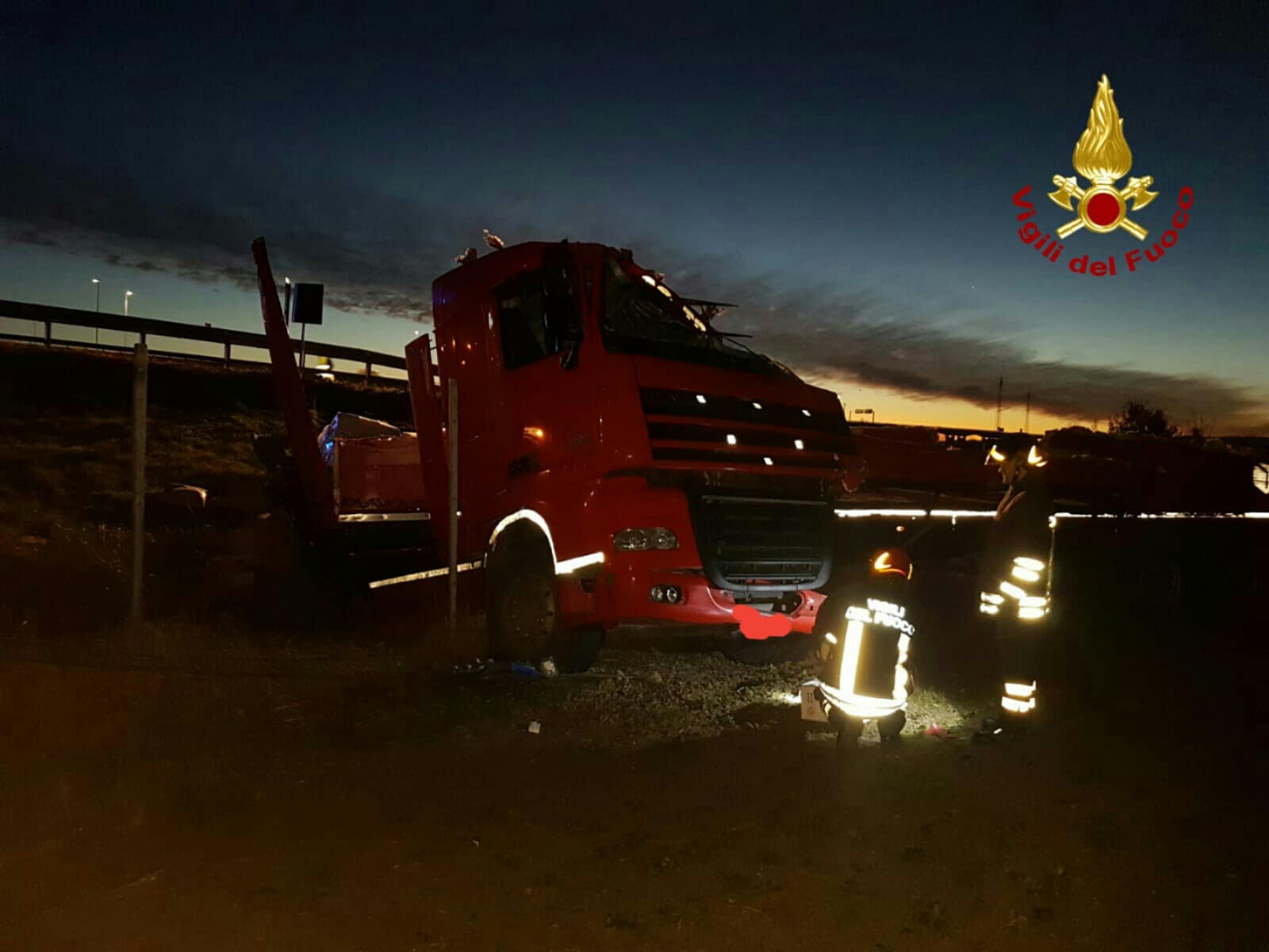 L’autocarro è uscito di strada rovesciandosi su un fianco. Il personale VF ha provveduto ad assistere il conducente (che si trovava già all’esterno dell’abitacolo del mezzo) ed a mettere in sicurezza l’area.