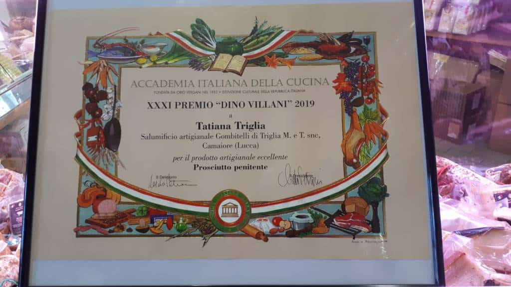 E’ andato al Salumificio Artigianale Gombitelli di Camaiore (LU) il Premio Dino Villani 2019 dell’Accademia Italiana della Cucina. Grazie ad uno dei prodotti di punta della storica attività versiiliese, il Prosciutto Penitente, la norcineria di Camaiore si porta a casa uno dei riconoscimenti più importanti a livello nazionale in ambito culinario e gastronomico.