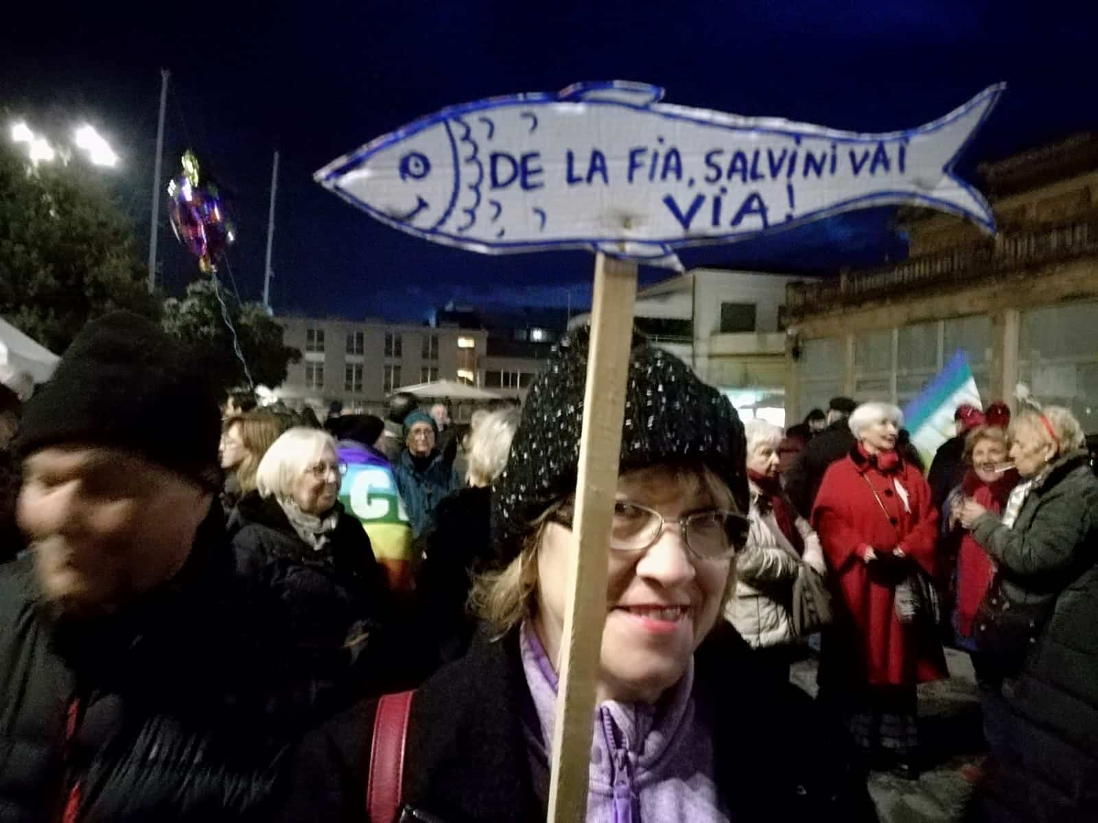 Sardine a Viareggio. Circa 500. Non migliaia, come a Firenze o nella vicina Lucca, ma numerose le presenze in piazza Campioni. All’appuntamento si sono ritrovati diversi viareggini, armati di cartelli colorati a favore della pace, contro Matteo Salvini, la Lega e le politiche dell’odio e della discriminazione. Tra gli oratori anche don Luigi Sonnenfeld, che ha portato un messaggio del compianto don Sirio, il prete operaio della Darsena, il presidente dell’Anpi e il sindaco di Stazzema Maurizio Verona.