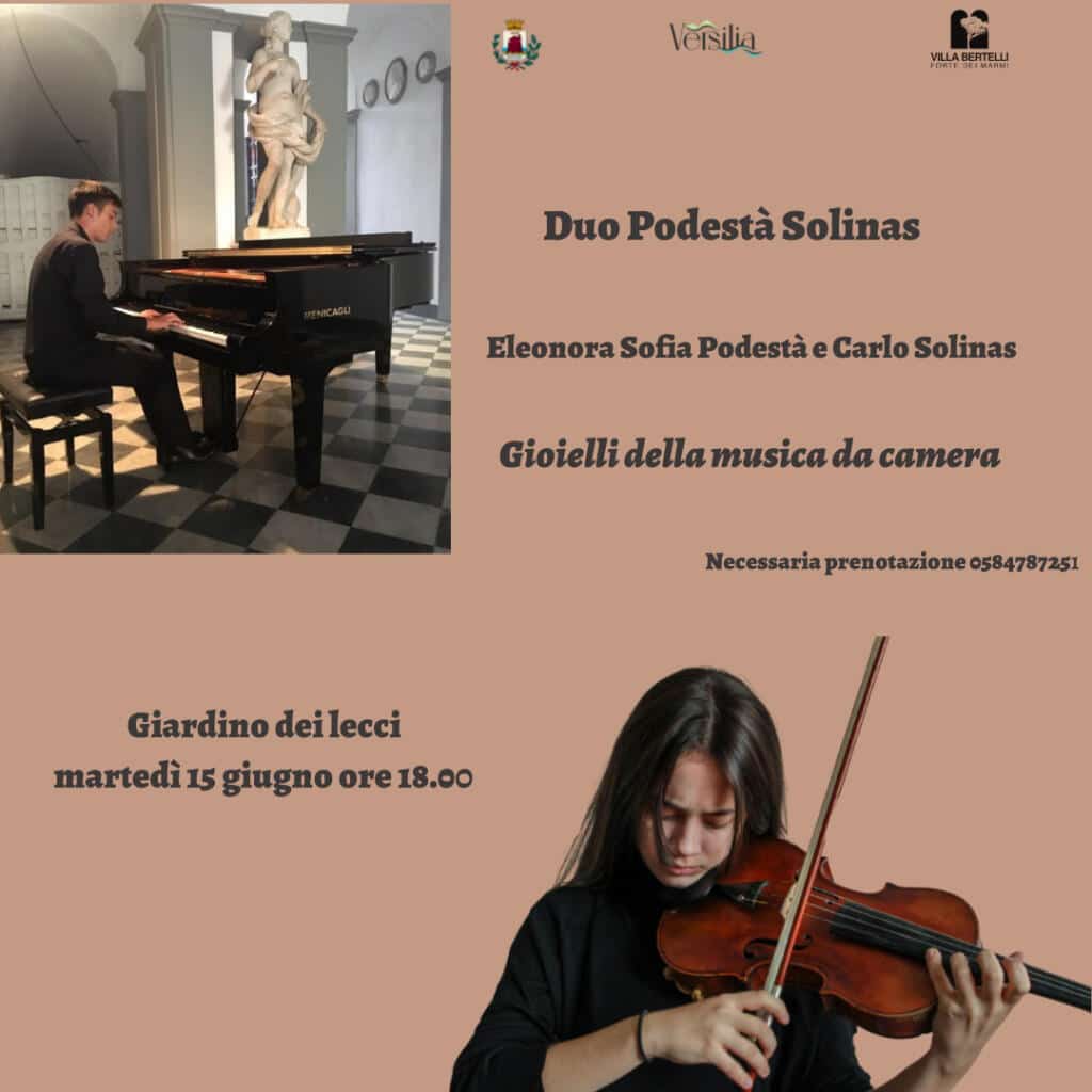 Gioielli della musica da camera, concerto per violino e pianoforte con il Duo Eleonora Sofia Podestà e Carlo Solinas, organizzato dall’associazione musicale Diapason, martedì 15 giugno alle 18.00 nel Giardino d’Inverno di Villa Bertelli a Forte dei Marmi, nell’ambito della ...