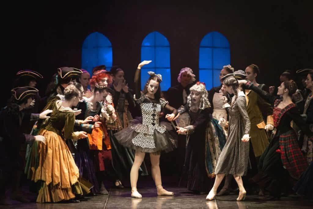 Lo spettacolo di Fredy Franzutti, coreografo tra i più apprezzati nel panorama nazionale, coniuga, con efficacia, le testimonianze della messa in scena originaria di Petipa – Ivanov (primi coreografi de “Lo Schiaccianoci) ad un impianto drammaturgico nuovo ispirato al mondo gotico del regista Tim Burton ricostruito da sontuose scene e spettacolari costumi.